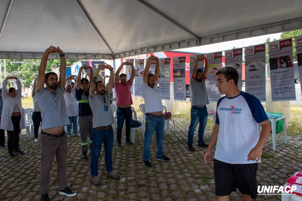 Sob a coordenação do Prof. Nestor Bertini, o curso de Educação Física da UNIFACP marcou presença com a presença da professora Aline e seus alunos. Juntos, eles realizaram uma série de atividades, incluindo exercícios laborais e dinâmicas em grupo, visando não apenas promover a saúde física, mas também fortalecer os laços entre os participantes.