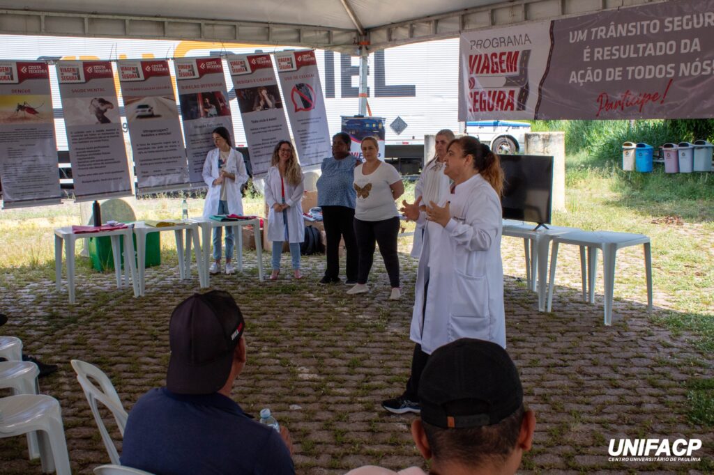 Enquanto isso, a equipe de Nutrição, liderada pela Professora Nailza Maestá, desempenhou um papel fundamental ao oferecer uma palestra esclarecedora sobre alimentação adequada durante as jornadas nas estradas. A palestra abordou a importância das boas práticas alimentares para prevenir doenças graves a longo prazo, destacando a relevância de escolhas saudáveis para a qualidade de vida dos profissionais que passam grande parte do tempo em trânsito.